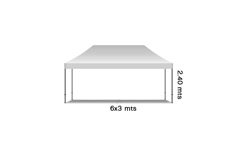 Alquiler carpas blancas 6×3 mts hasta 2.40 mts de altura. Tiene capacidad para una mesa redonda de 8 personas o una mesa de tablón para 10 personas.